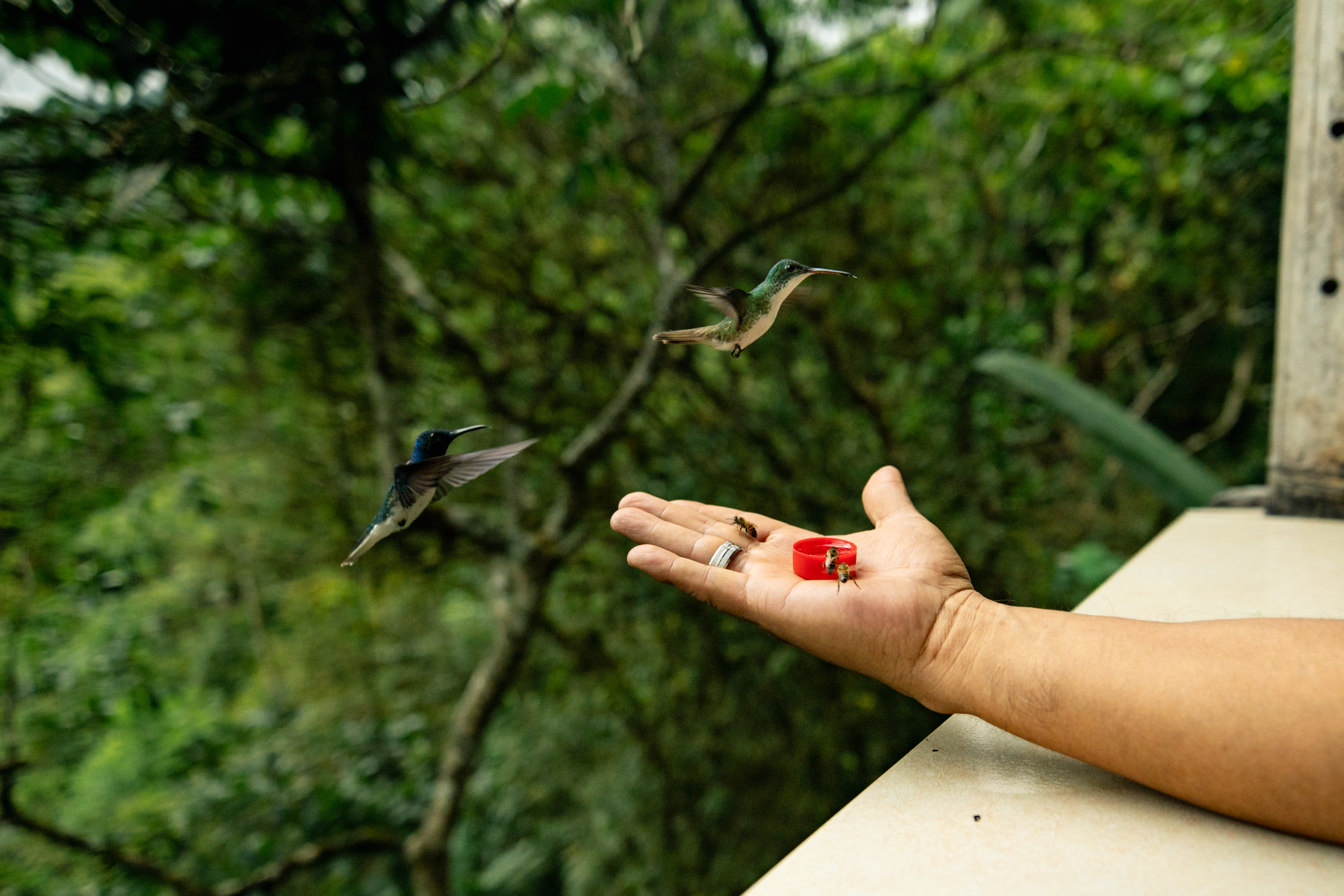 In Mindo, we visited a hummingbird sanctuary. The hummingbirds eat out of the palms of your hands. They use honey in a bottle cap. After the hummingbirds, we did some inner tube rafting which was exhilarating to say the very least. We approached big rocks and our inner tubes handled them with ease. The water temperature was on the cooler side but it was a really fun experience. My dad and I would do it again in a heartbeat. We also did a cable car. It takes you across a canyon in Mindo. However, the inner tube rafting was by far our favorite part of Mindo.